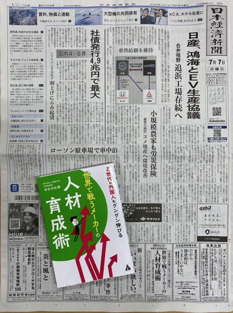 弊社社長・谷治元弘 著 『Z世代も外国人もグングン伸びる 世界で戦うメーカーの人材育成術』が 日経新聞に掲載されました!