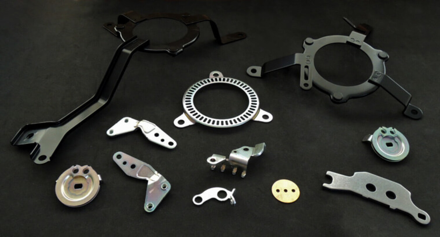 順送加工での加工可能な板厚は、0.1~4.5mmまで対応しており、鉄、アルミニウム、銅など、多品種材料を扱っています。